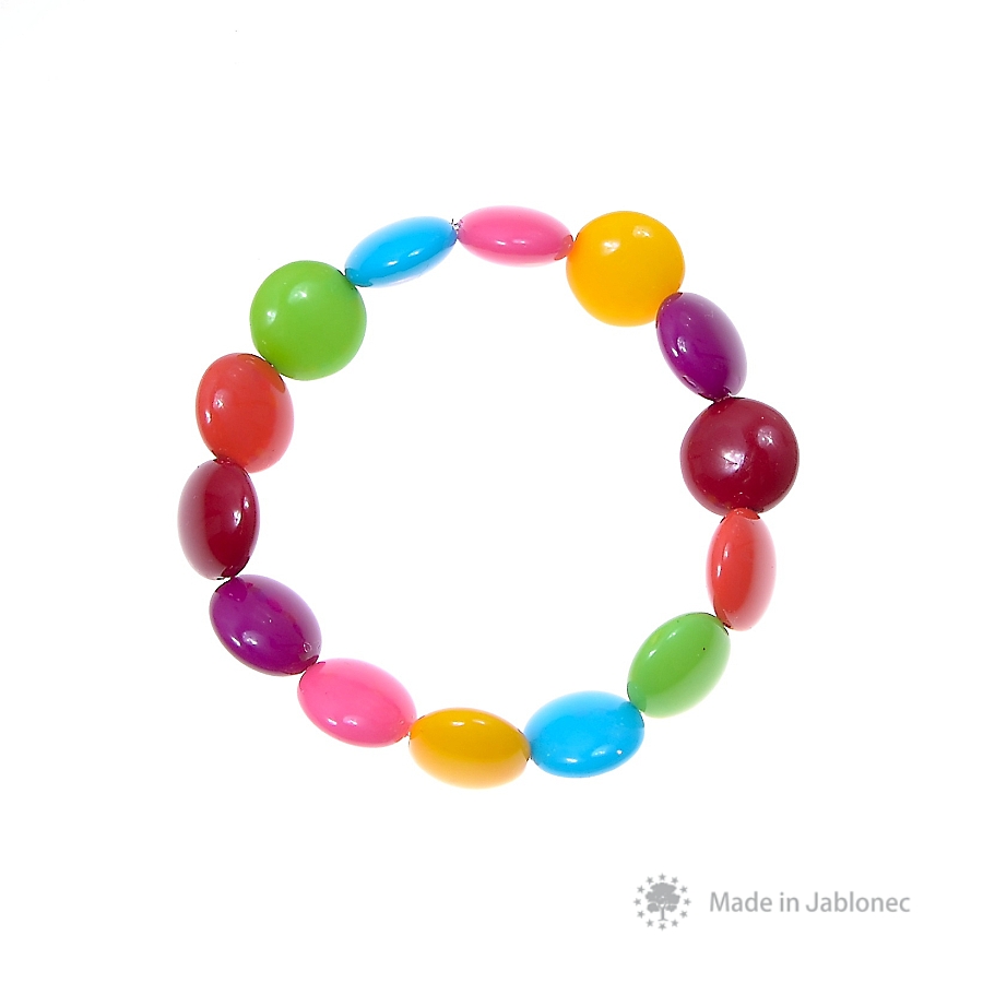 Veselý barevný náhrdelník ze skleněných mačkaných perlí "lentilek" vel.14mm. Celková délka 45,5cm + 6cm řetízková adjusta. Zakončeno karabinou v galvanizaci stříbro