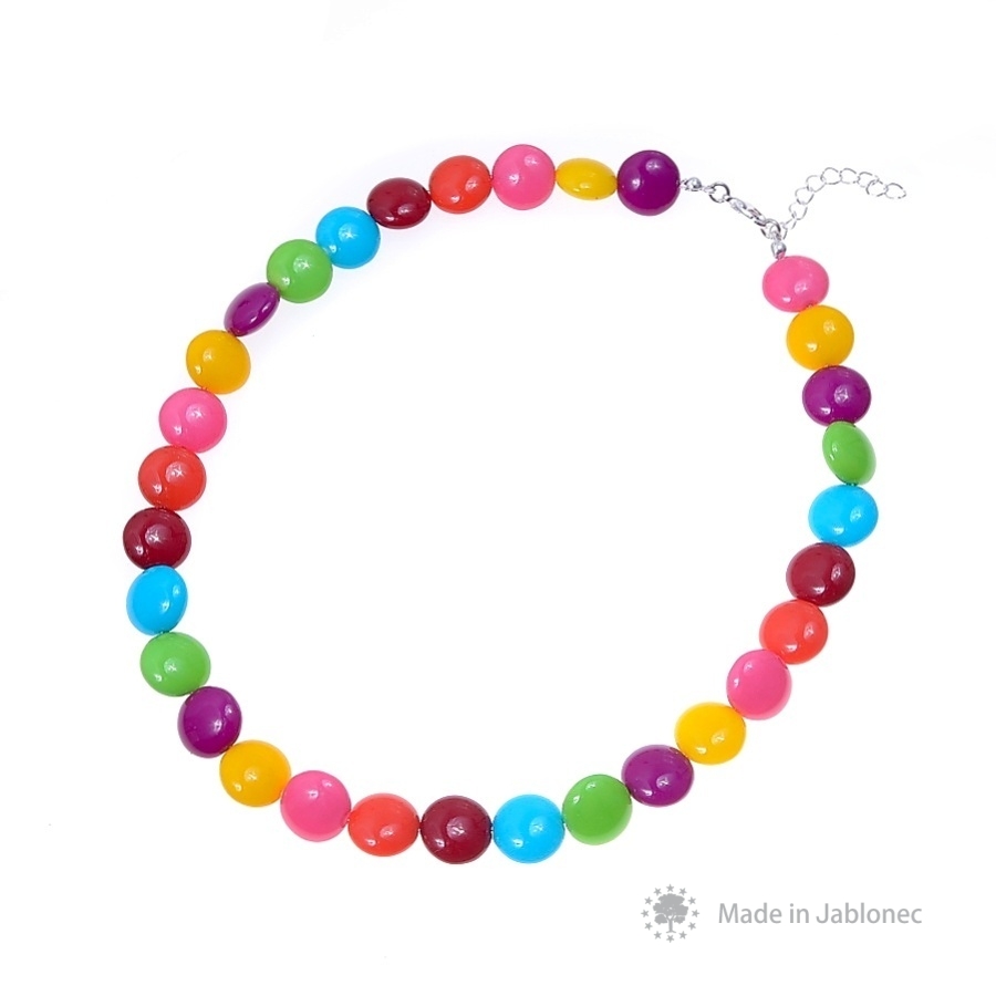 Veselý náramek ze skleněných barevných mačkaných perlí "lentilek" vel.14mm. Celková délka 17cm - na pružné gumičce - opelonu.